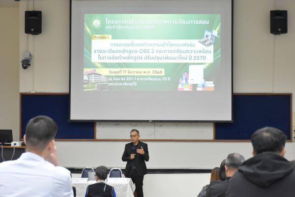 สำนักบริหารและพัฒนาวิชาการ จัดโครงการเสริมประสิทธิภาพการเรียนการสอน เพื่อเตรียมความพร้อมในการจัดทำหลักสูตรปรับปรุงและพัฒนาใหม่ในปี 2570 โดยมุ่งเน้นกระบวนการจัดการเรียนการสอนที่เน้นผลลัพธ์ (Outcome-Based Education: OBE) เพื่อยกระดับมาตรฐานทางวิชาการและการผลิตบัณฑิตให้ตอบโจทย์ความต้องการของสังคม