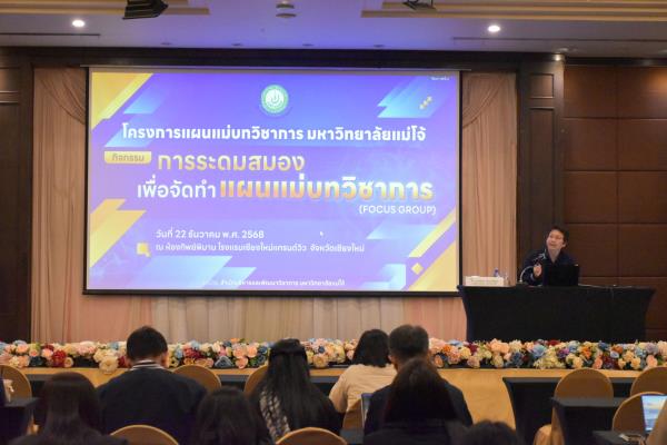 สำนักบริหารและพัฒนาวิชาการ ได้จัดกิจกรรม การระดมสมองเพื่อจัดทำแผนแม่บทวิชาการ (FOCUS GROUP)” ในวันจันทร์ที่ 22 ธันวาคม 2568 เวลา 08.30 - 17.00 น. ณ ห้องประชุมทิพย์พิมาน โรงแรมเชียงใหม่แกรนด์วิว อำเภอเมือง จังหวัดเชียงใหม่ โดยมีผู้เข้าร่วมโครงการประกอบด้วย ผู้บริหารมหาวิทยาลัย คณบดี รองคณบดีฝ่ายวิชาการ อาจารย์ผู้รับผิดชอบหลักสูตร และบุคลากรที่เกี่ยวข้อง จำนวน 120 ท่าน มาร่วมแลกเปลี่ยนเรียนรู้ ระดมความคิดเห็น ร่วมกันวิเคราะห์ สังเคราะห์ รวมถึงให้ข้อเสนอแนะในการกำหนดทิศทางในการพัฒนาหลักสูตรและองค์ประกอบที่สำคัญของแผนแม่บทวิชาการ มหาวิทยาลัยแม่โจ้ ที่มีความสอดคล้องกับวิสัยทัศน์ และพันธกิจของมหาวิทยาลัย รวมถึงสอดคล้องกับแผนการศึกษาแห่งชาติ ฉบับที่ 12 (2560 - 2579)