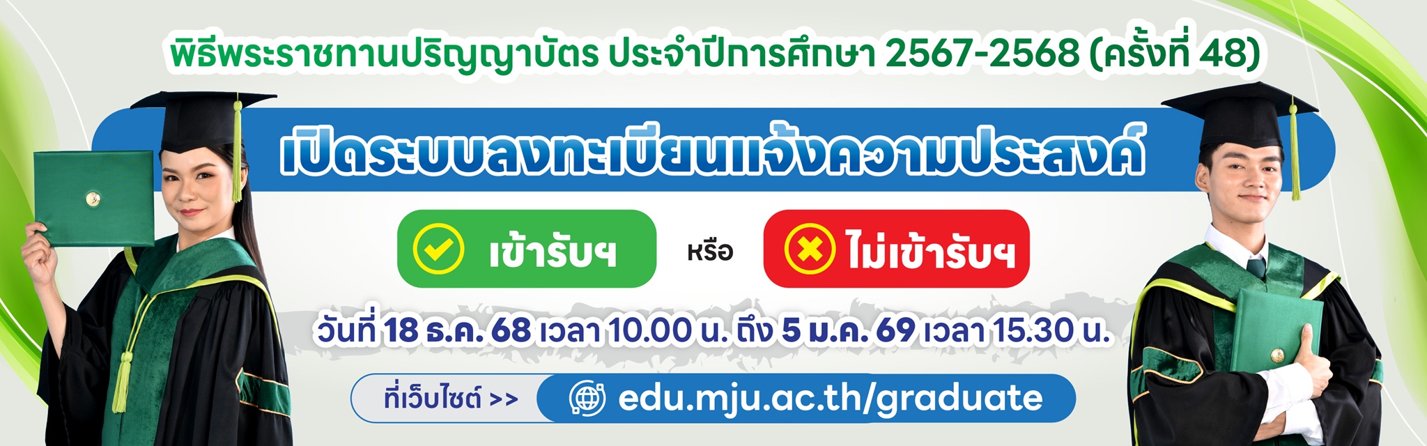 นักศึกษาที่จะสำเร็จการศึกษาในภาคเรียนที่ 2/2568 ให้ทำการส่งคาดว่าจะสำเร็จการศึกษาผ่านระบบออนไลน์ เข้าสู่ระบบ